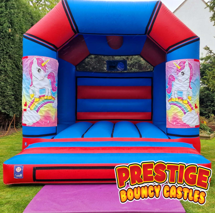 Make your celebration feel magical with our unicorn-themed inflatable from the Bouncy Castle Hire range. This extra-tall model (around 11ft overall height) is built for mixed age groups and sits within our Adult Bouncy Castle Hire options, so children and grown-ups can bounce together. A fitted shower cover helps keep the party going through light showers or summer sun.