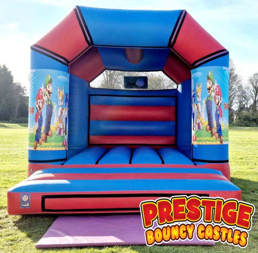 Add a touch of fun and character to your event with our plumber and hedgehog themed inflatable, part of our Adult Bouncy Castle Hire and Bouncy Castle Hire ranges. At 13ft by 15ft with an extra tall 11ft build, this unit is designed for children and adults to enjoy together, making it ideal for birthdays, school fetes and community celebrations. A fitted shower and sun cover is included for use in all weather.