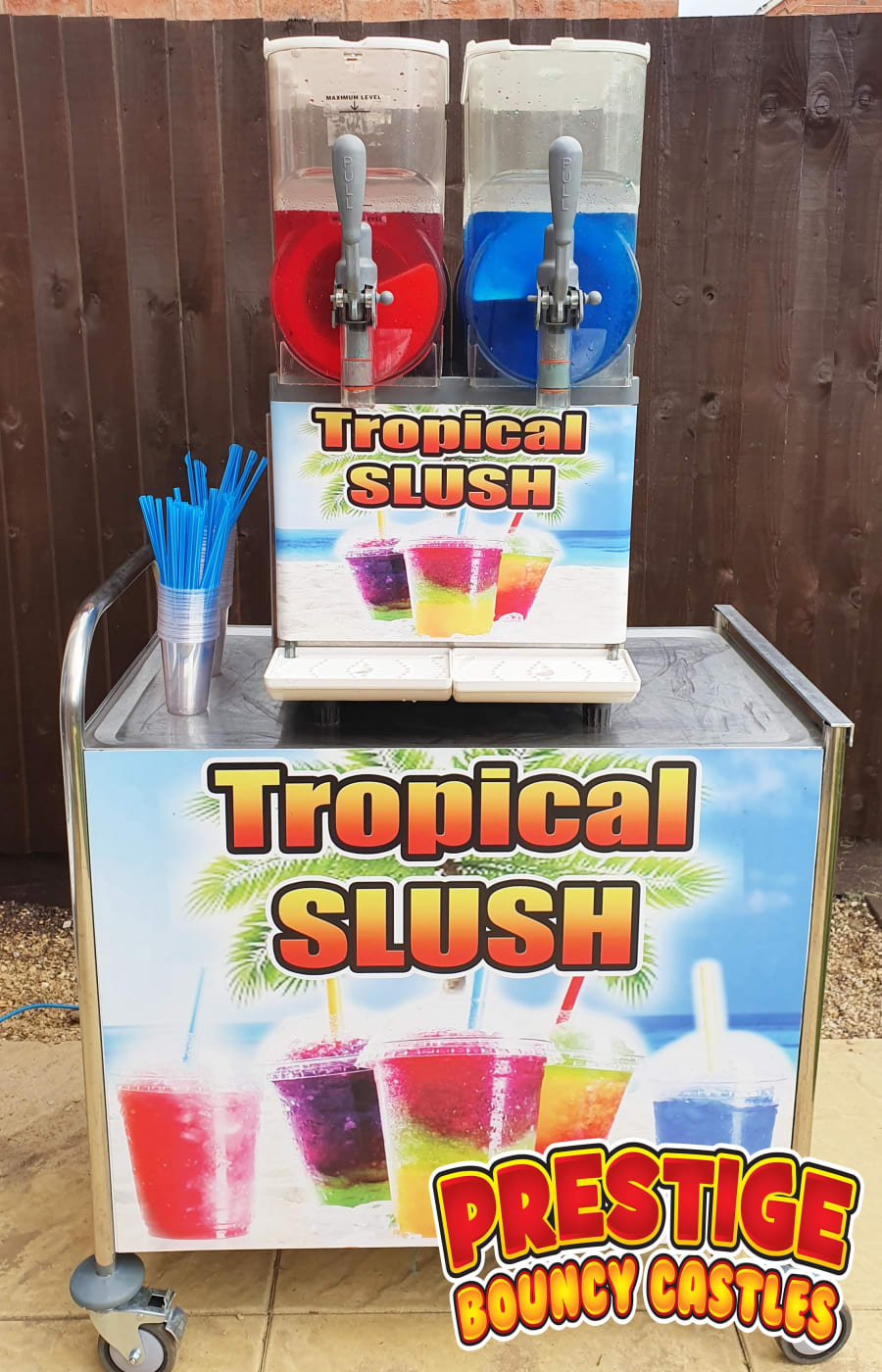 Book online today to secure this special offer slush machine hire, or contact our team by phone on 07794762351 or email info@prestigebouncycastles.co.uk for further details. Extra servings can be added if required — just ask when booking.
