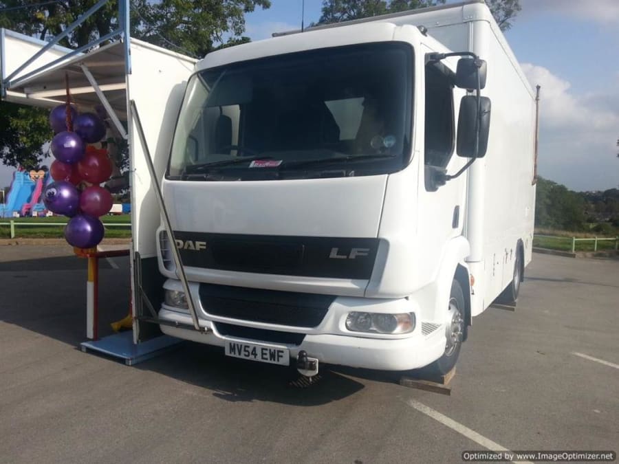 This stall is mounted on a 7.5 tonne Leyland Daf lorry so access is crucial and this vehicle can drive on grass providing the ground is hard.