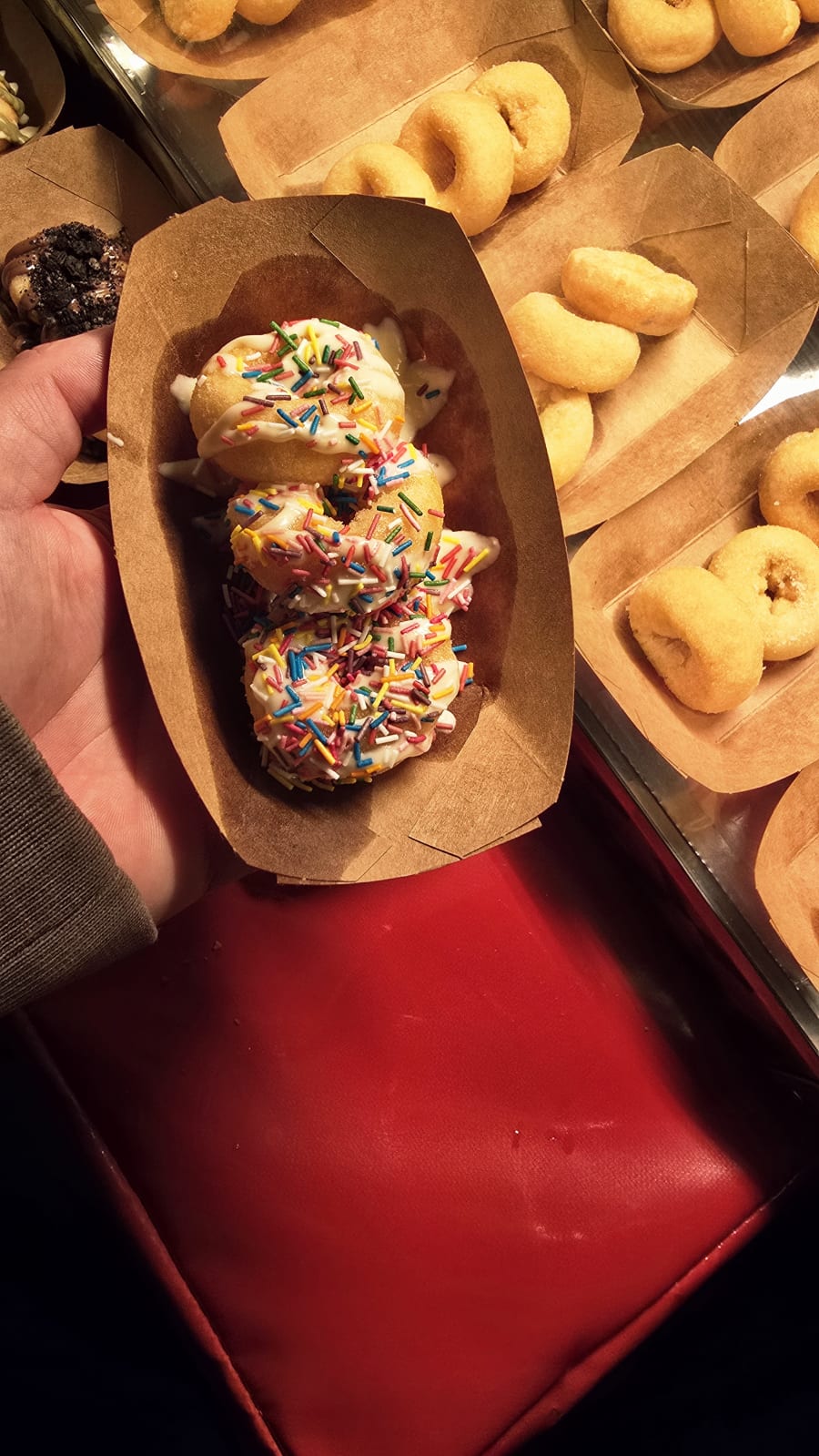 - Rainbow sprinkles + white chocolate sauce ✨